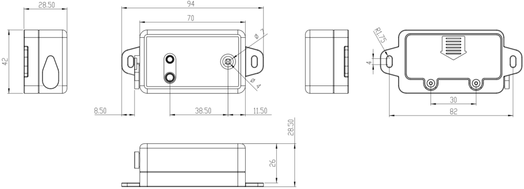 | Enclosure | Plastic, PC/ABS |